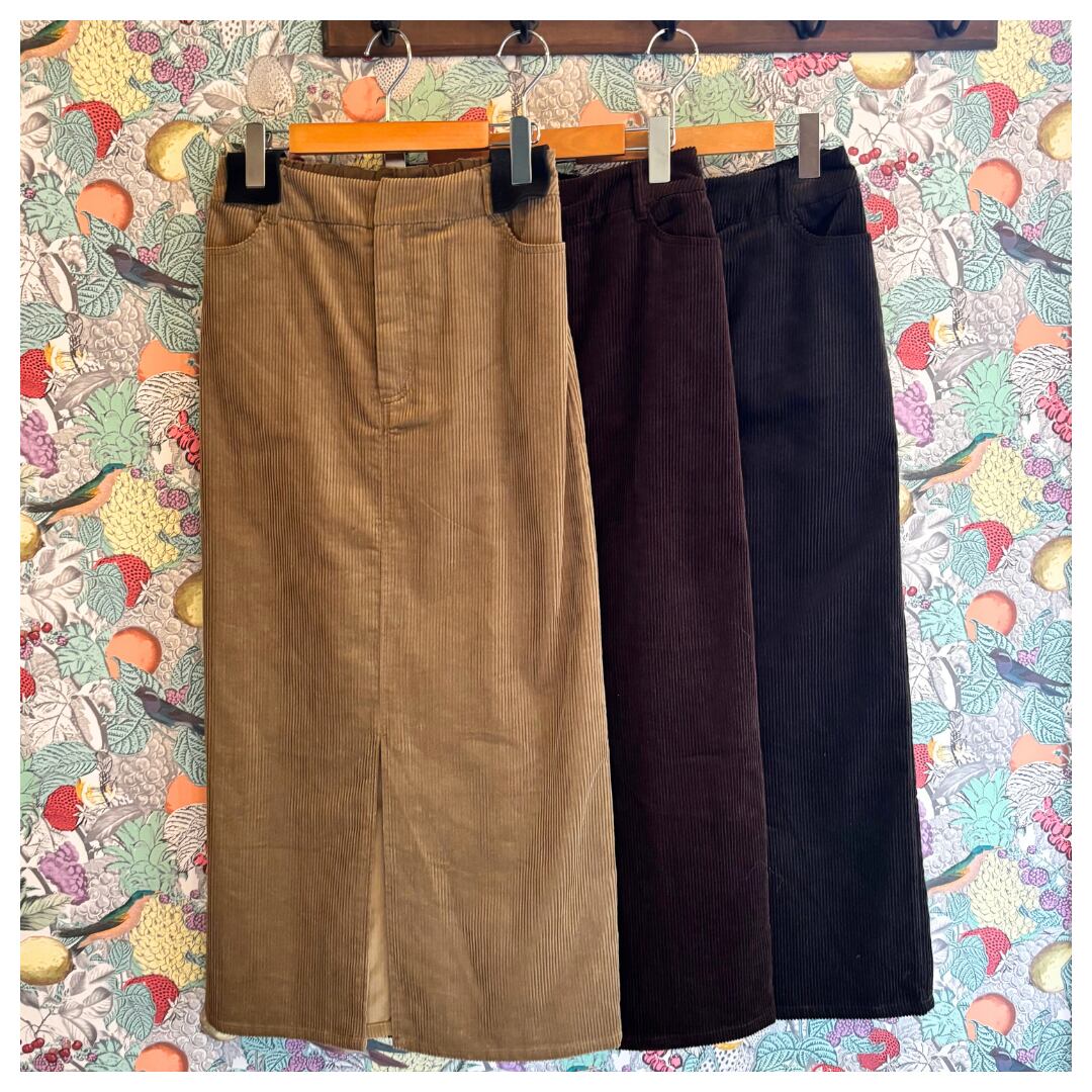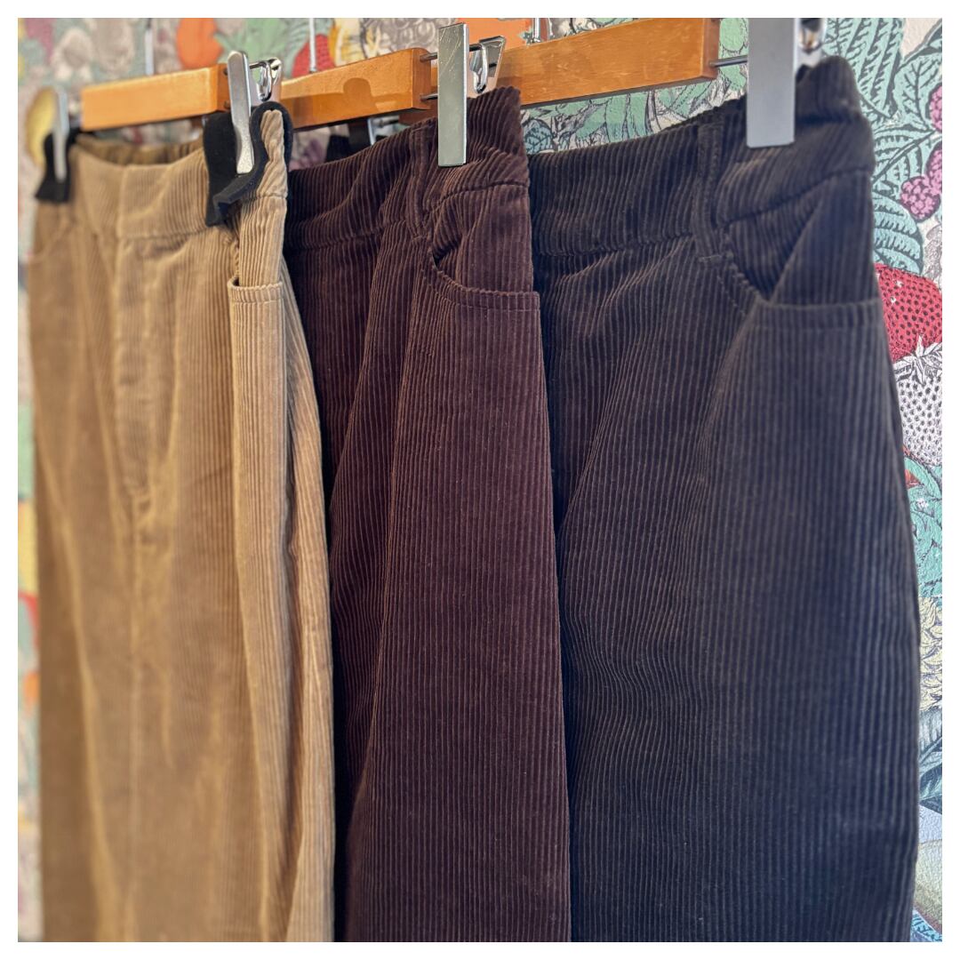 トレンドのコーデュロイ素材はバックウエストゴムでストレスフリーな着心地