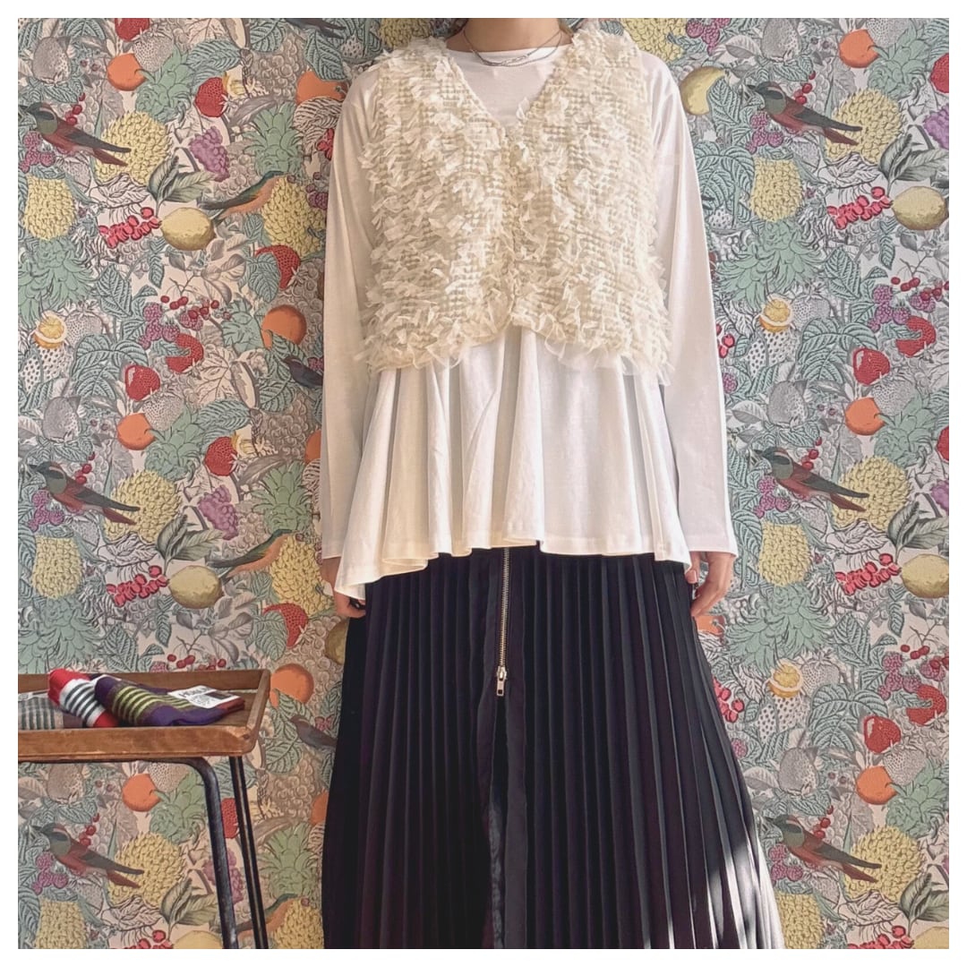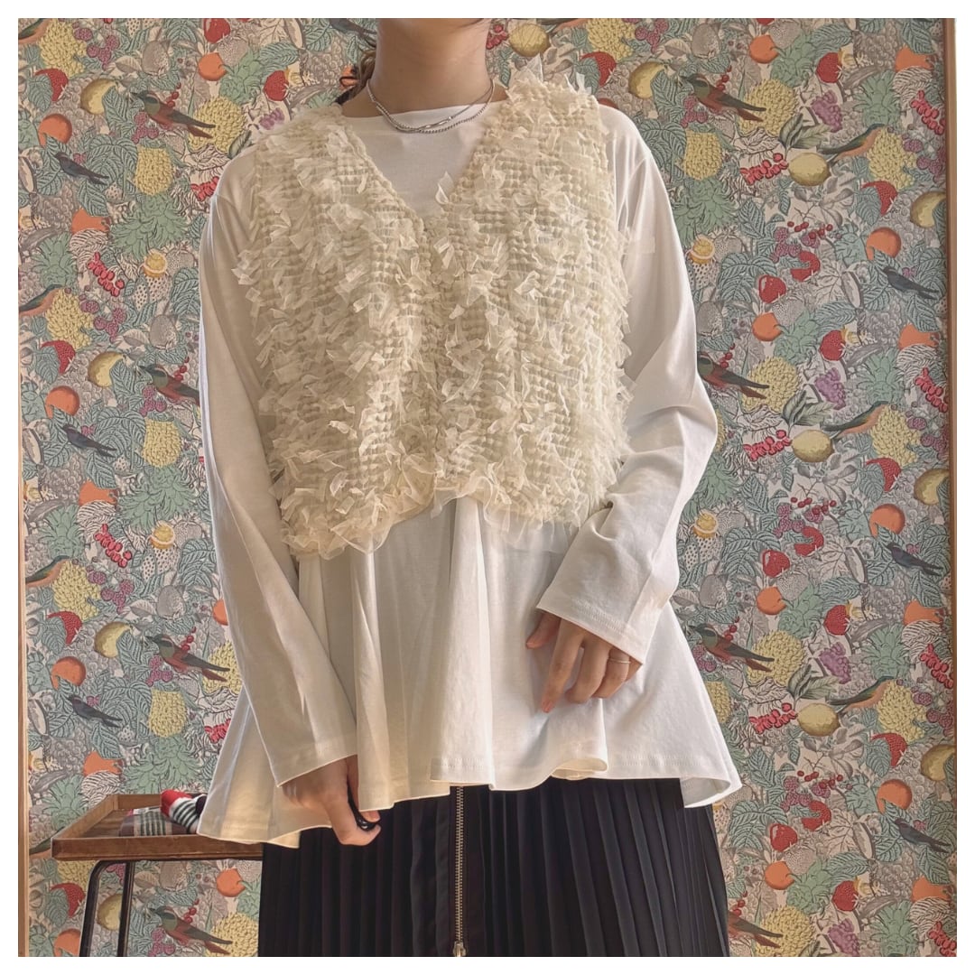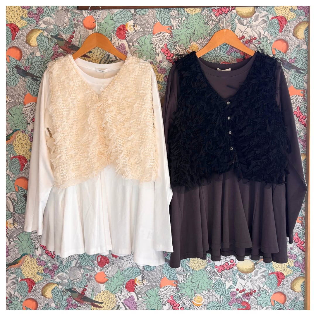 ふわふわとした可愛いショートベストとカットソーがセットになったお得なアイテム