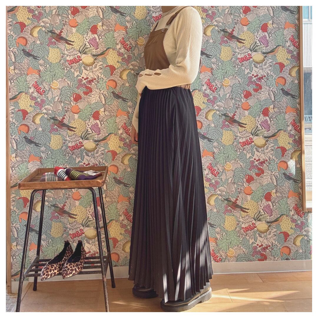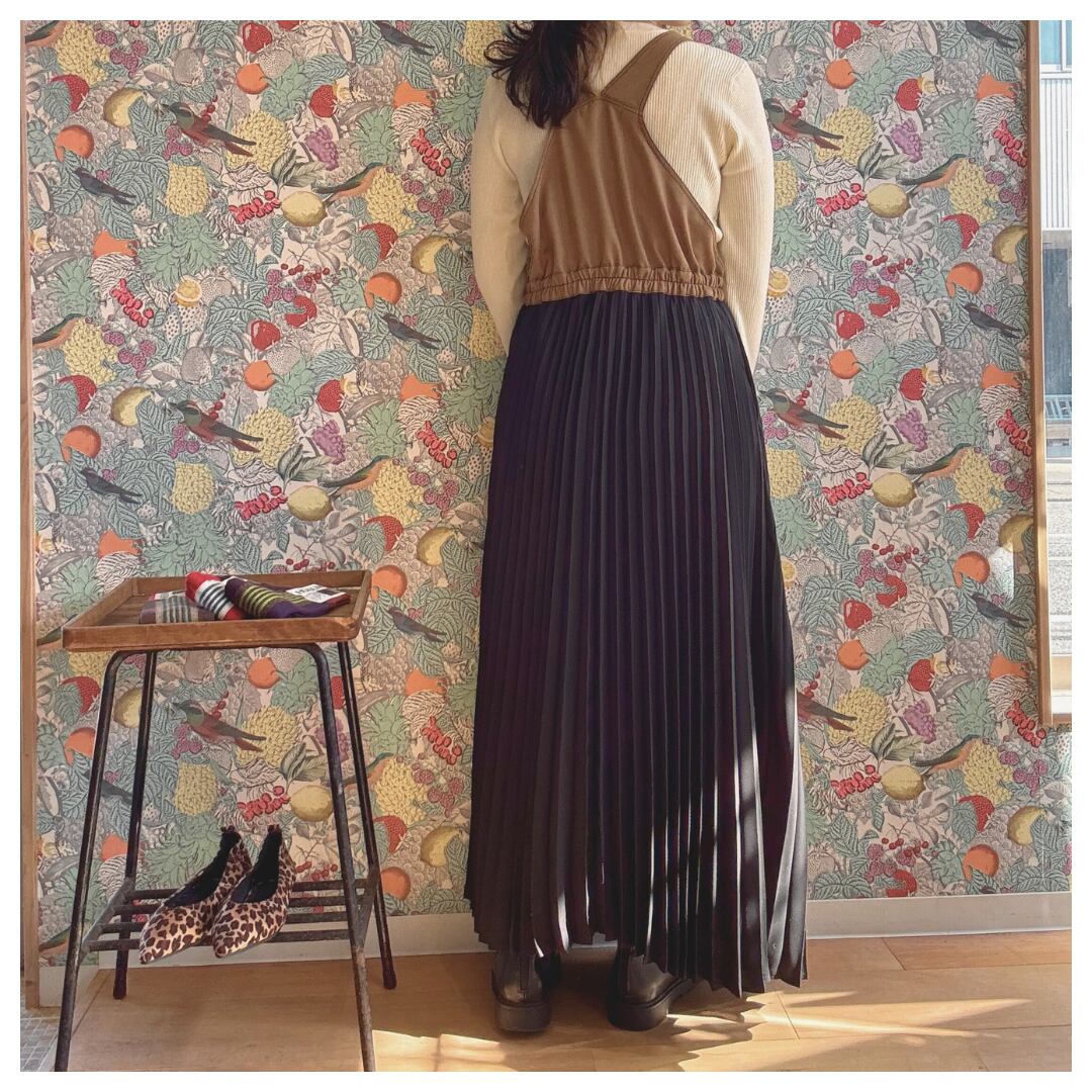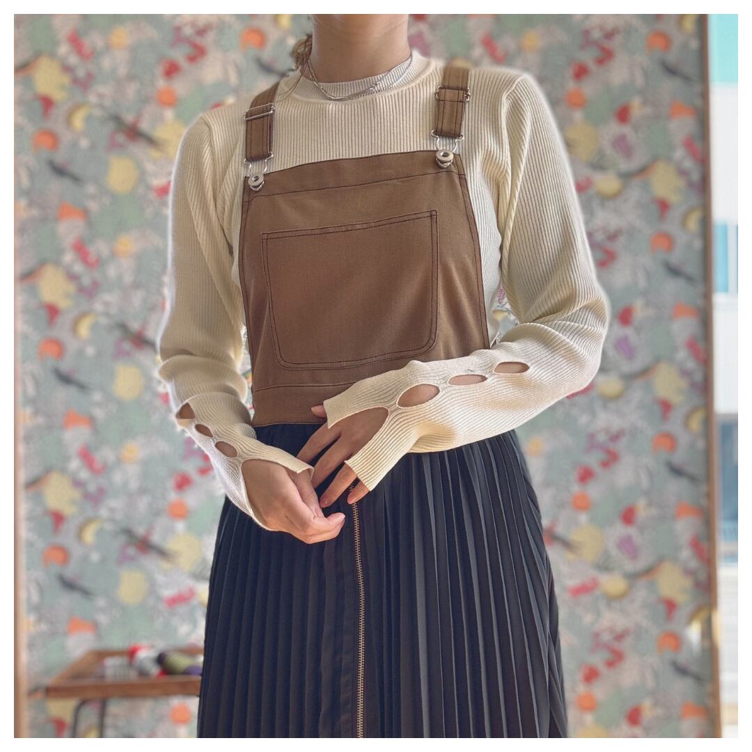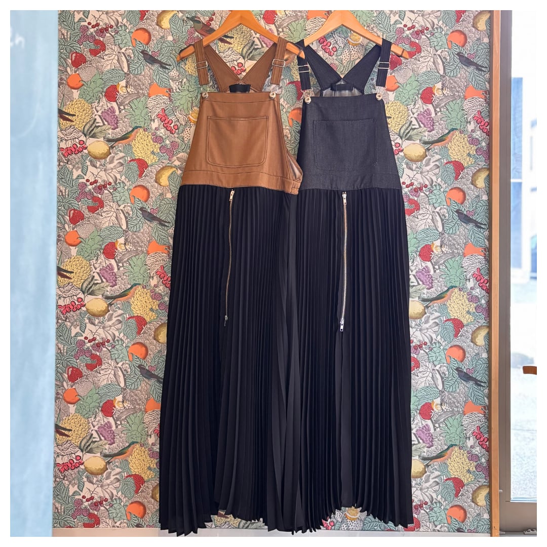 デニムとプリーツの切り替えサロペットワンピース