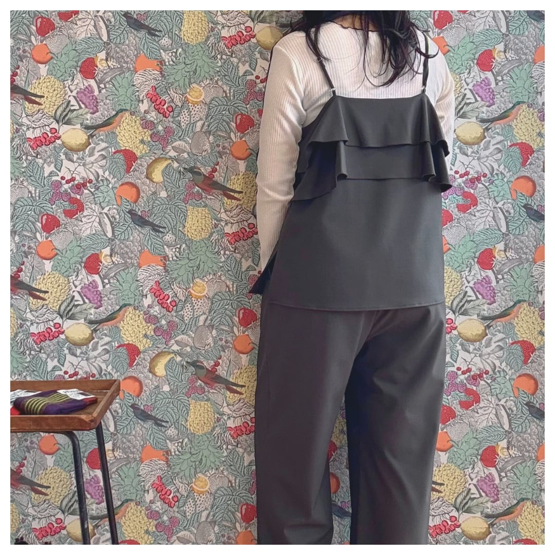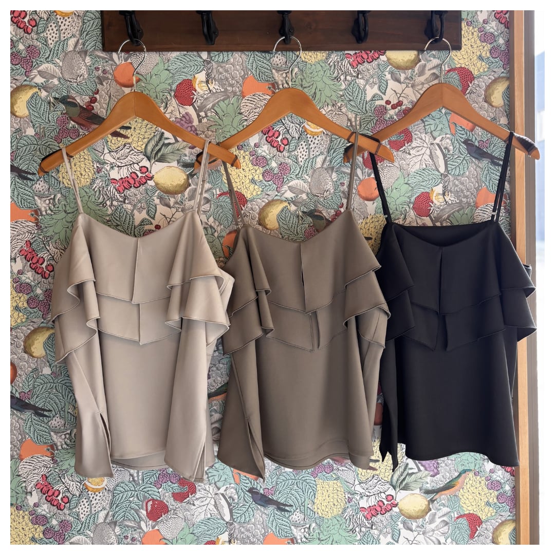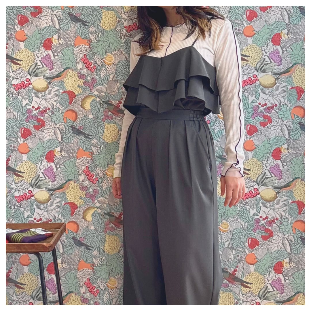 フリルのボリュームにもこだわり、同素材のパンツと合わせるとオールインワン風にもなる優れもの