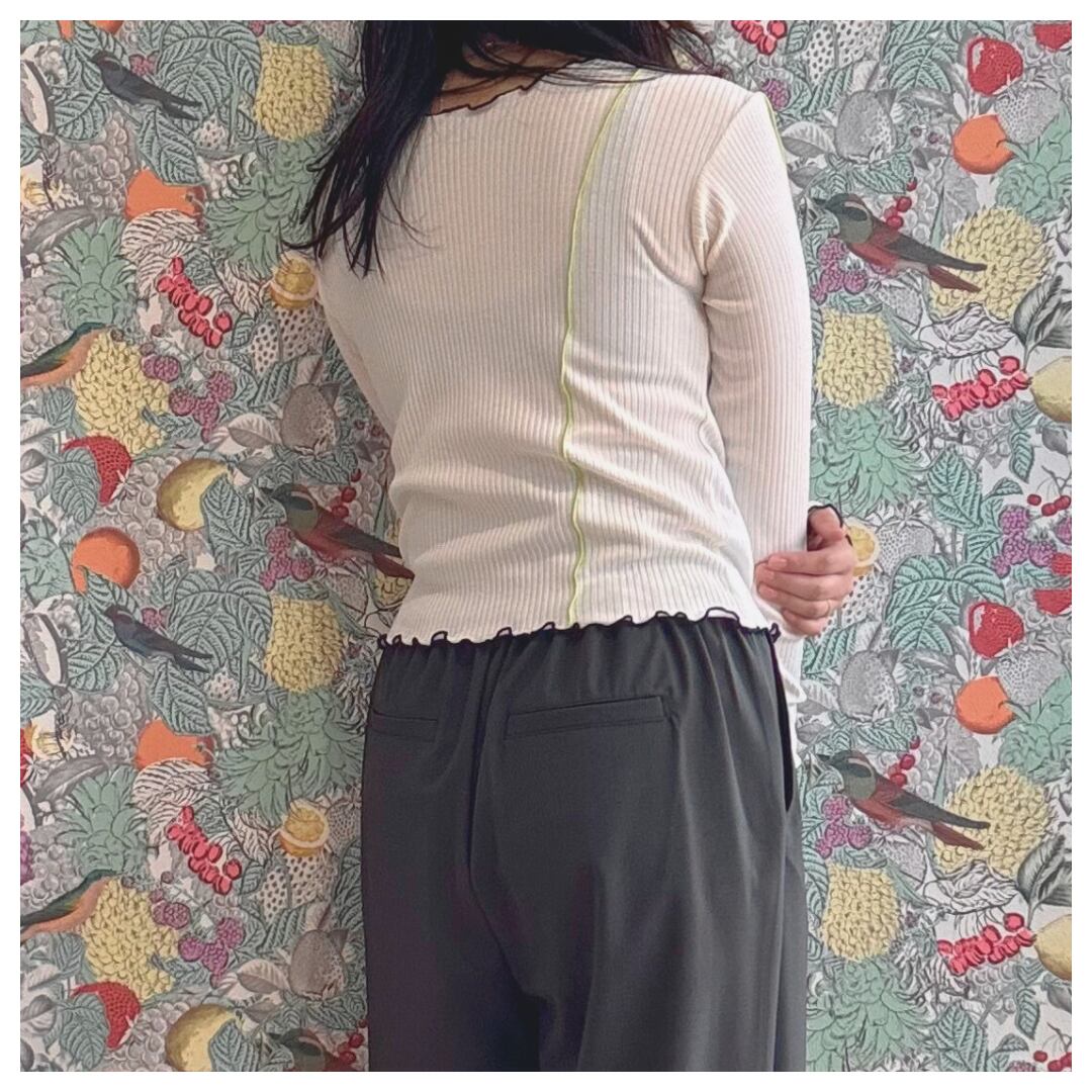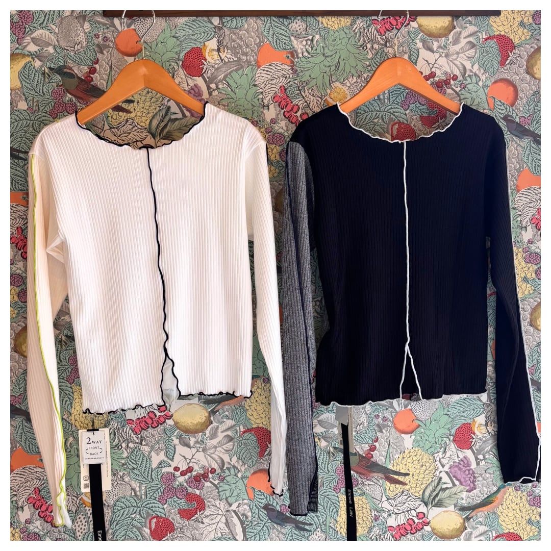 さらっとした清涼感のあるリブカットソーにメロウ配色でメリハリの効かせたデザイントップスです